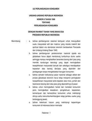 Undang Undang No 8 Tahun 1999 Tentang Perlindungan Konsumen
